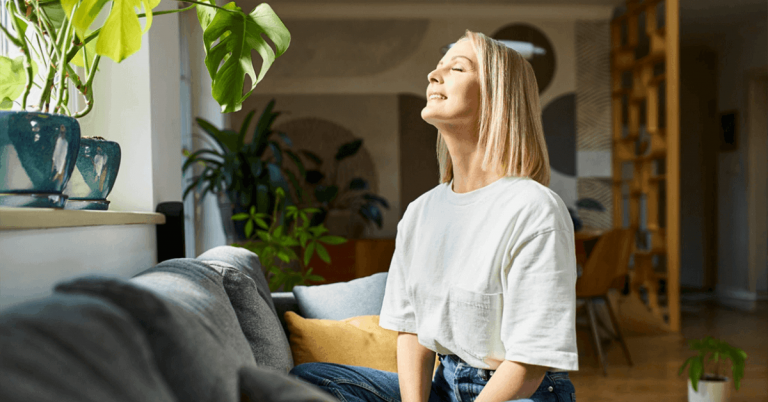 Set a three-minute timer and focus on your breath and posture right away. Drop your shoulders, soften your jaw, and extend your exhale. This signals your nervous system to downshift from alert mode.